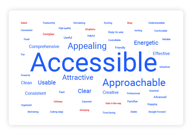 - For desirability testing, I have noticed that the order of words of the list matters. A lot of users didn’t bother to go to the end of that long list. Since the words were in alphabetical order, I assume it is the reason why the word “Accessible” received way more votes than the words “Easy to use”.