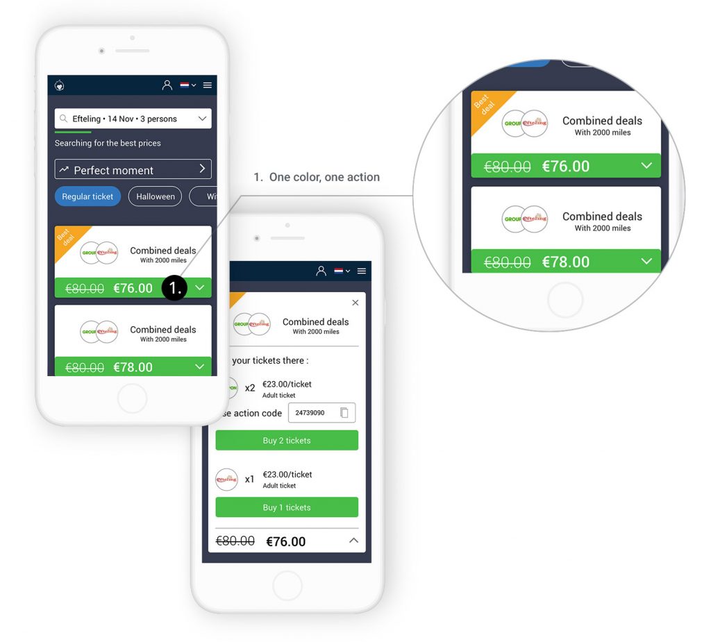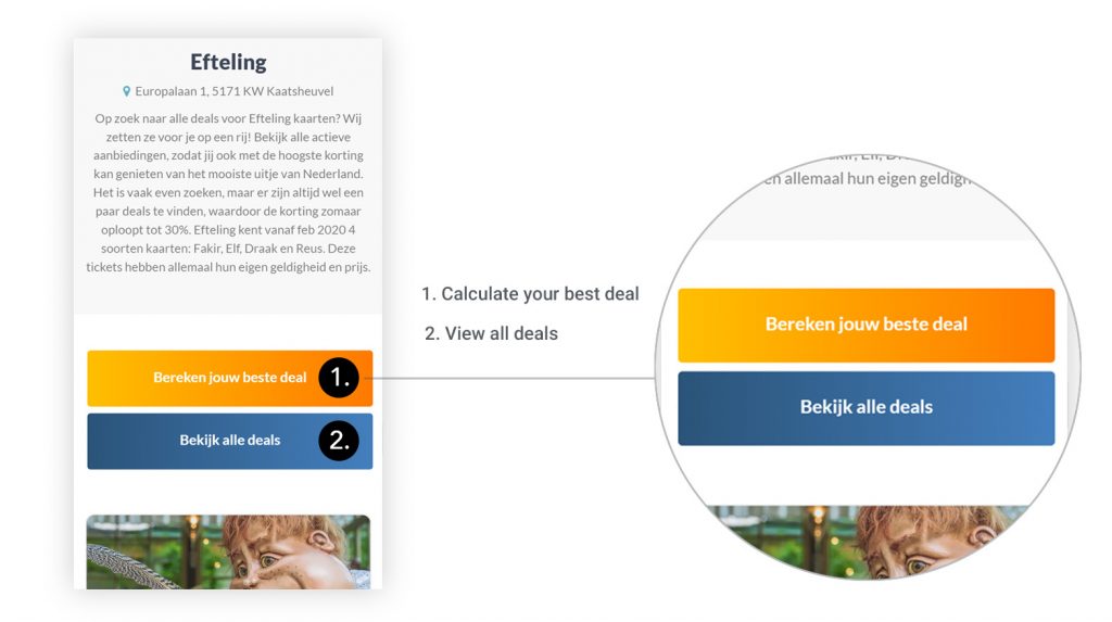Most users got confused by the copy of some buttons. For example, with the button ‘look all deal’ the user isn’t sure if he should expect to see ‘all the deals of the whole website’ or ‘only’ deals related to the park he is looking at.